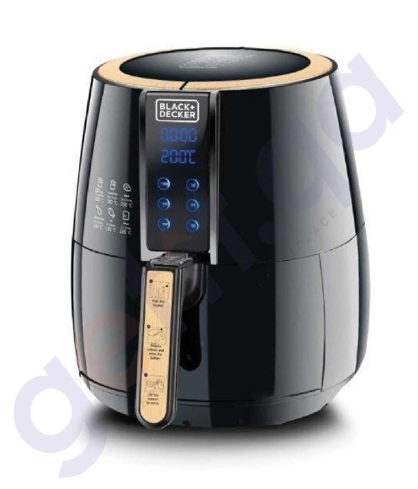 Black and Decker air fryer has cool touch housing and handle. This aero fryer is ideal for frying and roasting.Delicious food is finally guilt free, thanks to the Black and Decker 4 Liter Digital AerOfry. It cuts out on the oil usage so that you can relish on mouthwatering, crispy food without the added fat. The rapid air convention heating inside the fryer results in quick and even cooking of food. It has a variable temperature control feature that so you can cook according to the exact temperature needed for your dish. Also, it has a timer function that automatically shuts off the machine once cooking is complete. This aero fryer has a food basket that holds up to 4L of food, making it easy for you to fry snacks for the whole family in one go.
