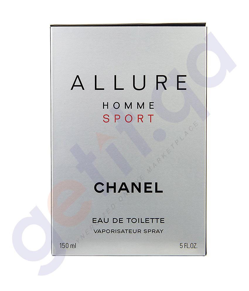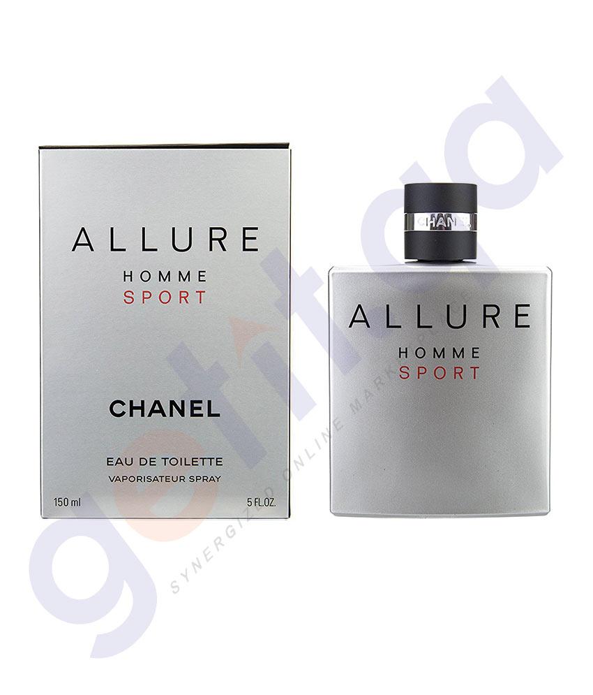 ALLURE HOMME SPORT 150ml edt vapo. Determination in his eyes. Extreme stress. Action. Pushing the limits. Inspired by the intensity of the feat, Jacques Polge, the Creator of Chanel Perfumes, Develops New ALLURE HOMME SPORT. Chanel brings Chanel Allure Sport, a sporty fragrance for men. Get this fragrance for men in a stylish 150ml bottle and relish an energized start of the day. Chanel has bottled the freshness and calm of sea in Chanel Allure Sport. Concocted for men, the Chanel Allure Sport has a tangy facet of orange in the top note and imparts energy. Further down in the heart lie the spices of nature, which give masculinity to this Chanel fragrance. The alluring effect of this fragrance ends with sweet and warm accords of amber and musk complemented by other earthy notes.