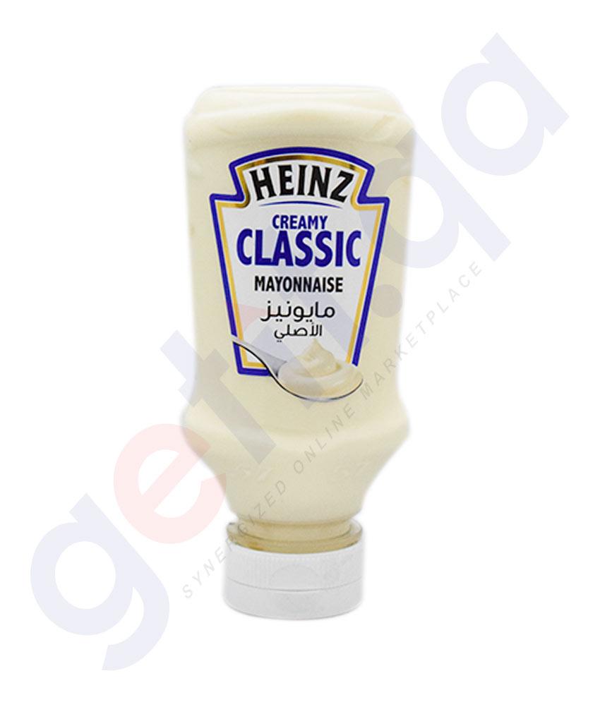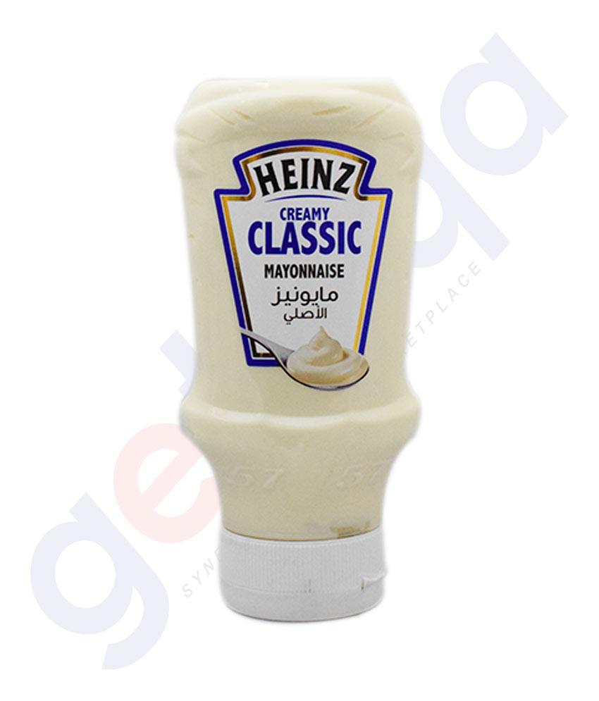 Made with best quality ingredients, Heinz Creamy Classic Mayonnaise is the classic rich and smooth mayo variant with a hint of paprika extract to satisfy your taste buds. You can club it with your favourite sandwiches, burgers, rolls and other finger-licking snacks instantly. It comes in easy to open and pour pack so that you don't wait to have your best snack time anywhere, anytime. The rich taste of classic mayonnaise makes you want it even more. Also try other delicious variants such as Heinz Incredibly Light, Creamy Classic, Spicy Tikka Masala & Real Garlic mayonnaise to club with your favourite meals. Established in 1869, Heinz is one of the top most brands worldwide maintaining sustainability in order to deliver the best in market and makes sure to maintain its taste with freshness.