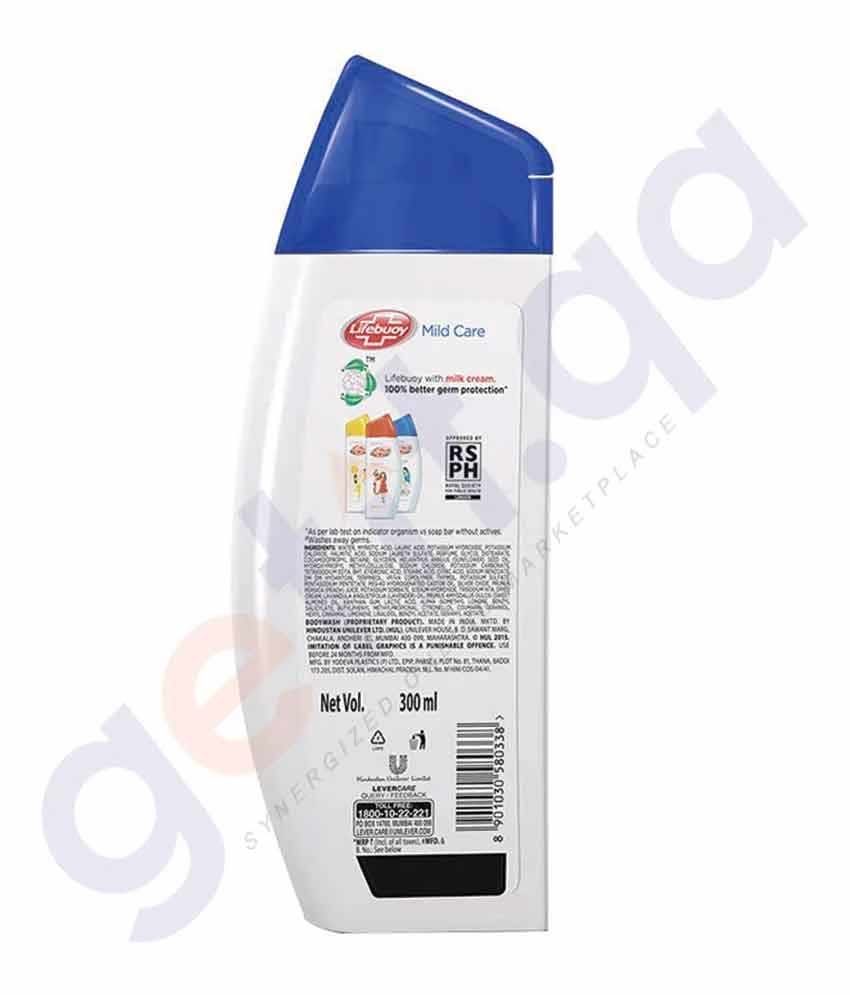Protect your family from 10 infection causing germs with Lifebuoy Mild Care Body Wash. We believe -skin demands a balance between protection and care. The special formula of Lifebuoy Mild Care Body wash contains the goodness of milk cream and oats for soft and smooth skin -while still protecting you from 10 infection causing germs.