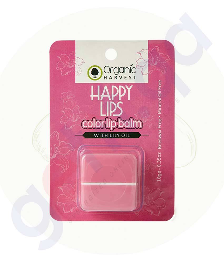 - The Organic Harvest 10g Lily Lip Balm nourishes and softens dry and chapped lips. It is formulated with organic lanolin, vitamin E and squalane, Shea butter, olive oil, jojoba oil and lily oil and delivers food grade colour. It gives you flawless shine and helps you attain gorgeous lips at instant.