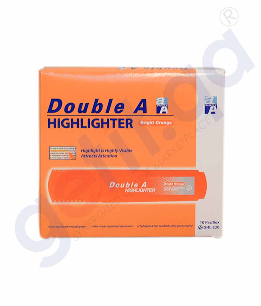 DOUBLE A HIGHLIGHTER - PACK OF 10 BRIGHT ORANGE DHL-220-BO
