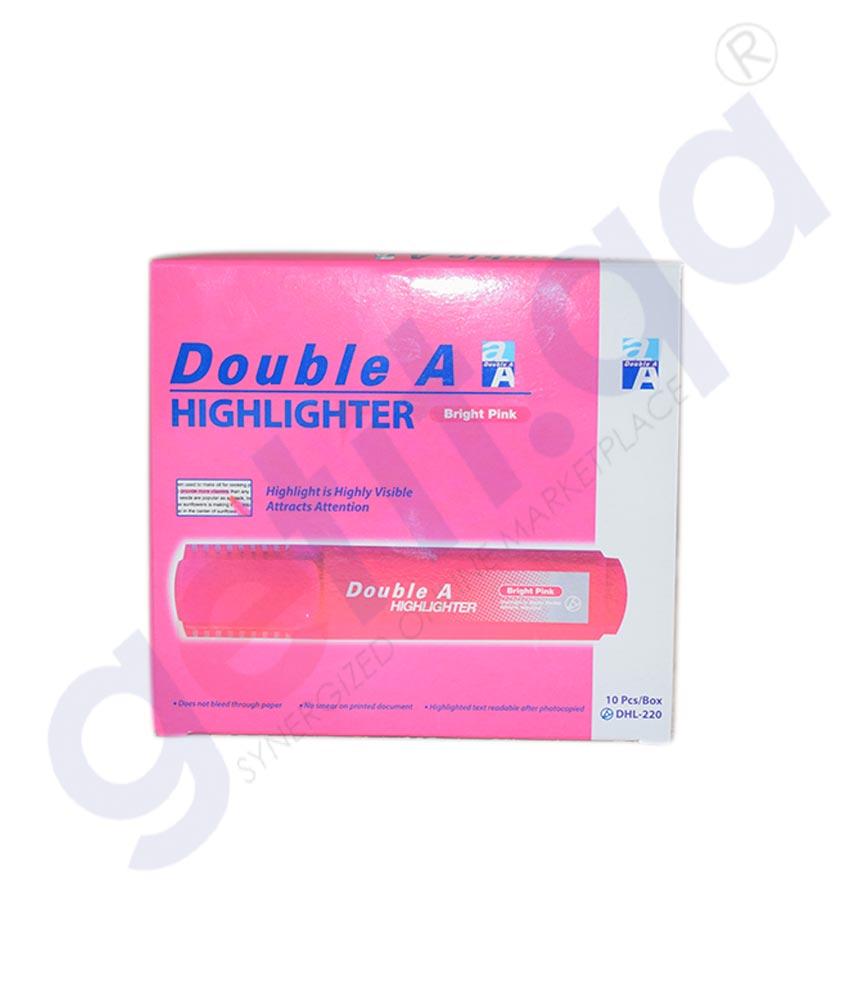 DOUBLE A HIGHLIGHTER - PACK OF 10'S BRIGHT PINK DHL-220-BP