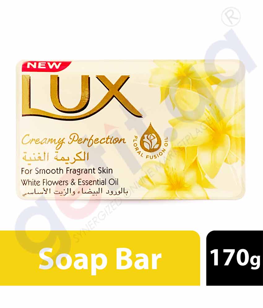 Pamper your skin with a LUX Creamy Perfection soap bar. Infused with Swiss moisturisers and the notes of delicate white florals, revel in visibly softer skin